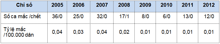 Bảng 5. Tình hình bệnh bạch hầu ở Việt nam năm 2005 – 2012