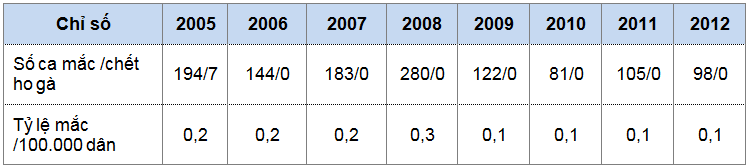 Bảng 6. Tình hình bệnh ho gà ở Việt Nam năm 2005 – 2012