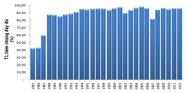 Biểu đồ 1. Kết quả tiêm chủng đầy đủ toàn quốc giai đoạn 1985 – 2012