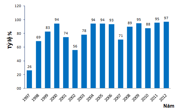 Biểu đồ 5. Tỷ lệ tiêm vắc xin VGB3, 1997-2012